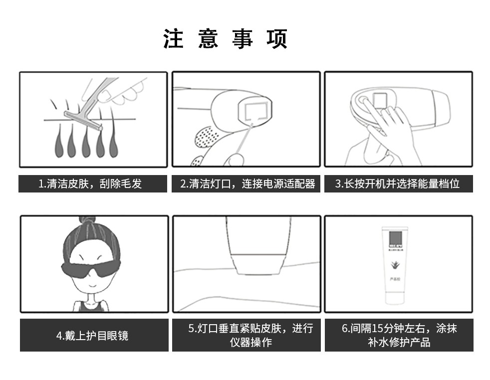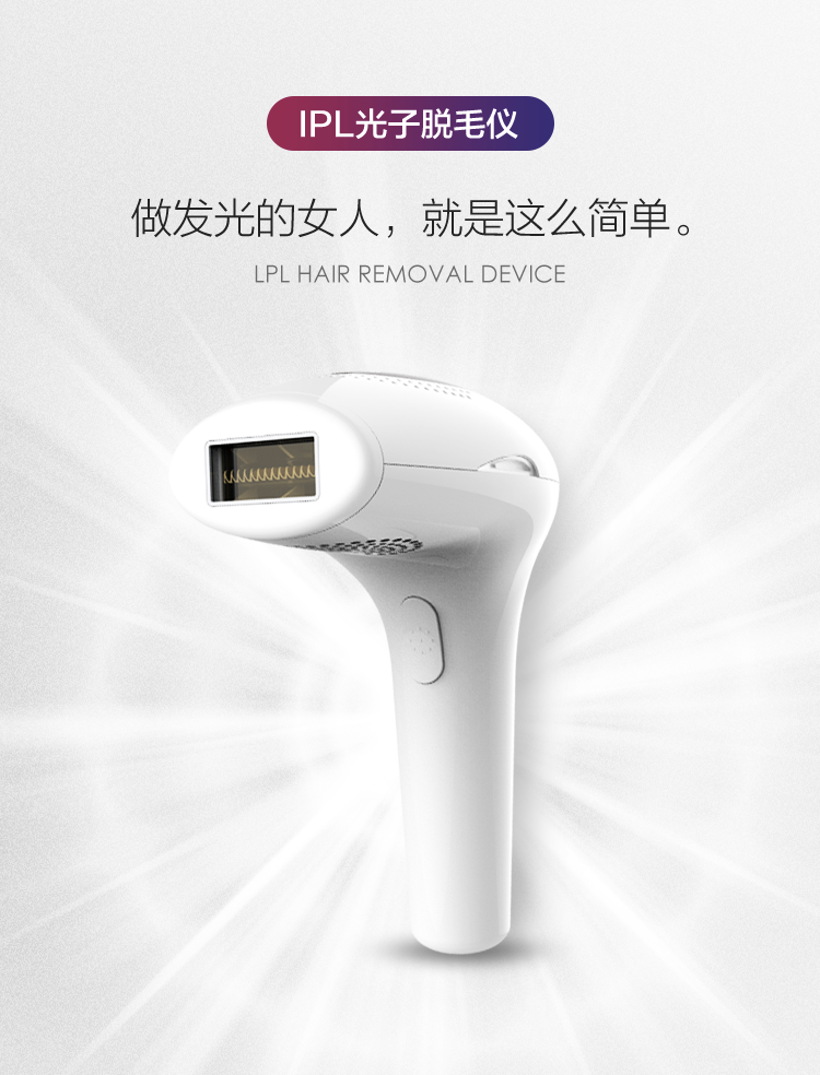 全身脫毛 · 單閃OR連打 · 智能膚色檢測(cè) · 靜毛不反復(fù) · 50萬次閃光